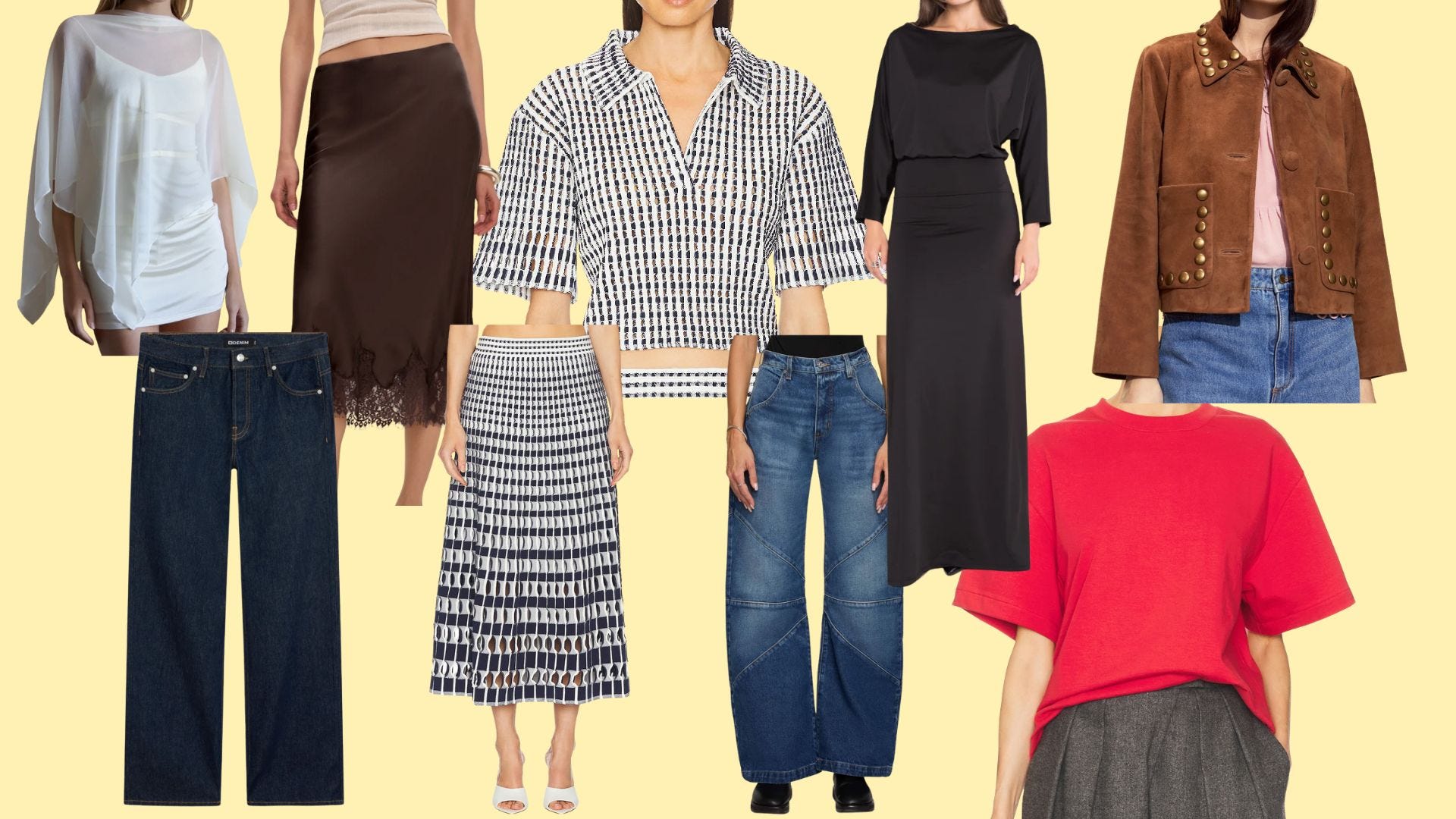 Buci Poncho//EB Denim Jeans//Reformation Lace Skirt//Simkhai Skirt & Top//EB Denim Barrel Jeans//Ripley Rader Dress//Helsa Boxy Tee//Cynthia Rowley Suede Jacket